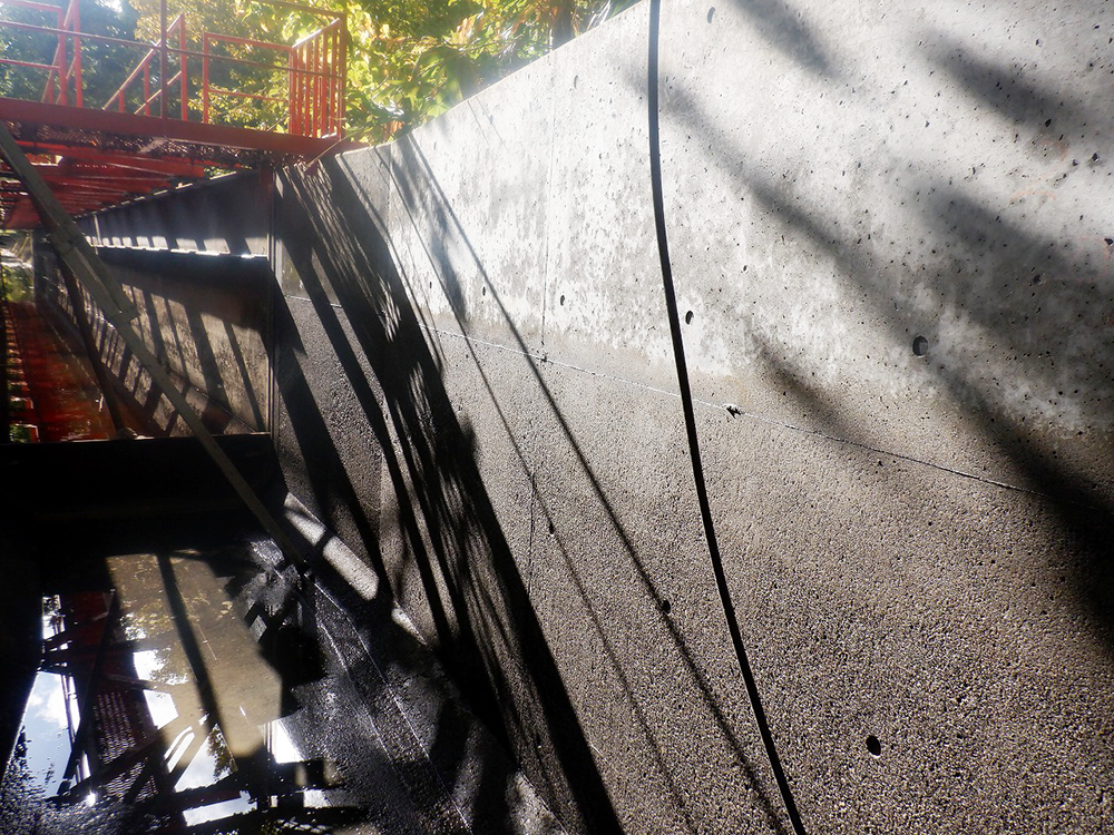 流れる水がかかり続けると、コンクリート内に含まれるカルシウム分が溶け出てしまったり、表面を削ってしまうからです。